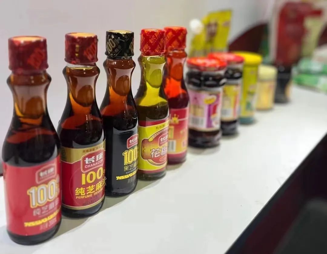 而在這其中,長康集團的調(diào)味品產(chǎn)品區(qū)格外搶眼。簡潔大氣的展臺布置,豐富多樣的產(chǎn)品展示,從拳頭產(chǎn)品芝麻油,到食醋,食用油,生抽等各類調(diào)味品,都以精美的包裝和卓越的品質(zhì),讓人駐足欣賞。