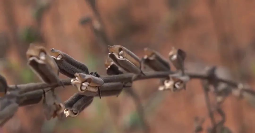 一顆顆飽滿的芝麻蒴掛滿枝頭。